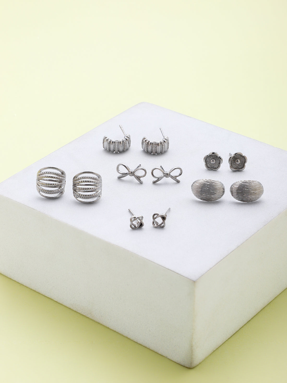 Set Of Six Silver Plated Studs Earrings