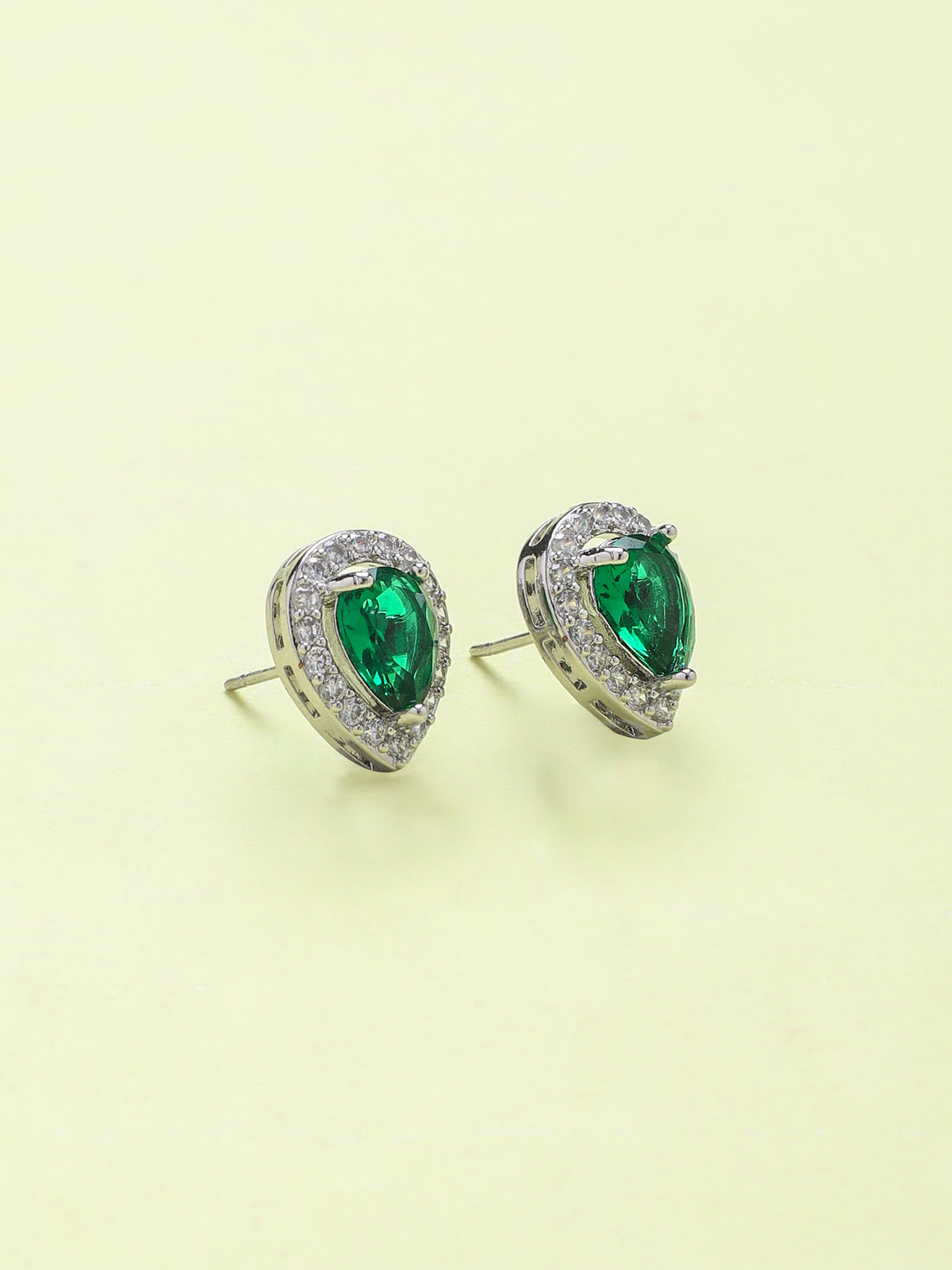 Stainless Steel Silver Plated American Diamond Green Earrings