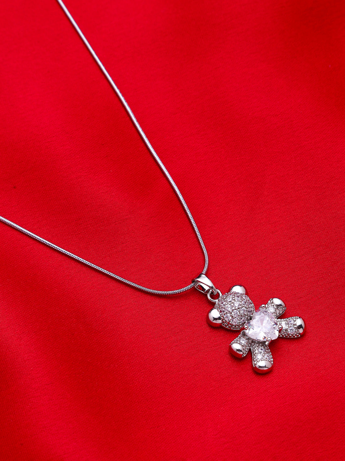 Stainless Steel Anti-Tarnish Rhodium Plate Teddy Bear Necklace