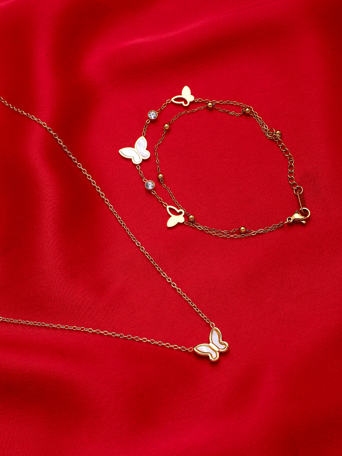 Gold Plated Anti-Tarnish Butterfly Necklace & Bracelet set