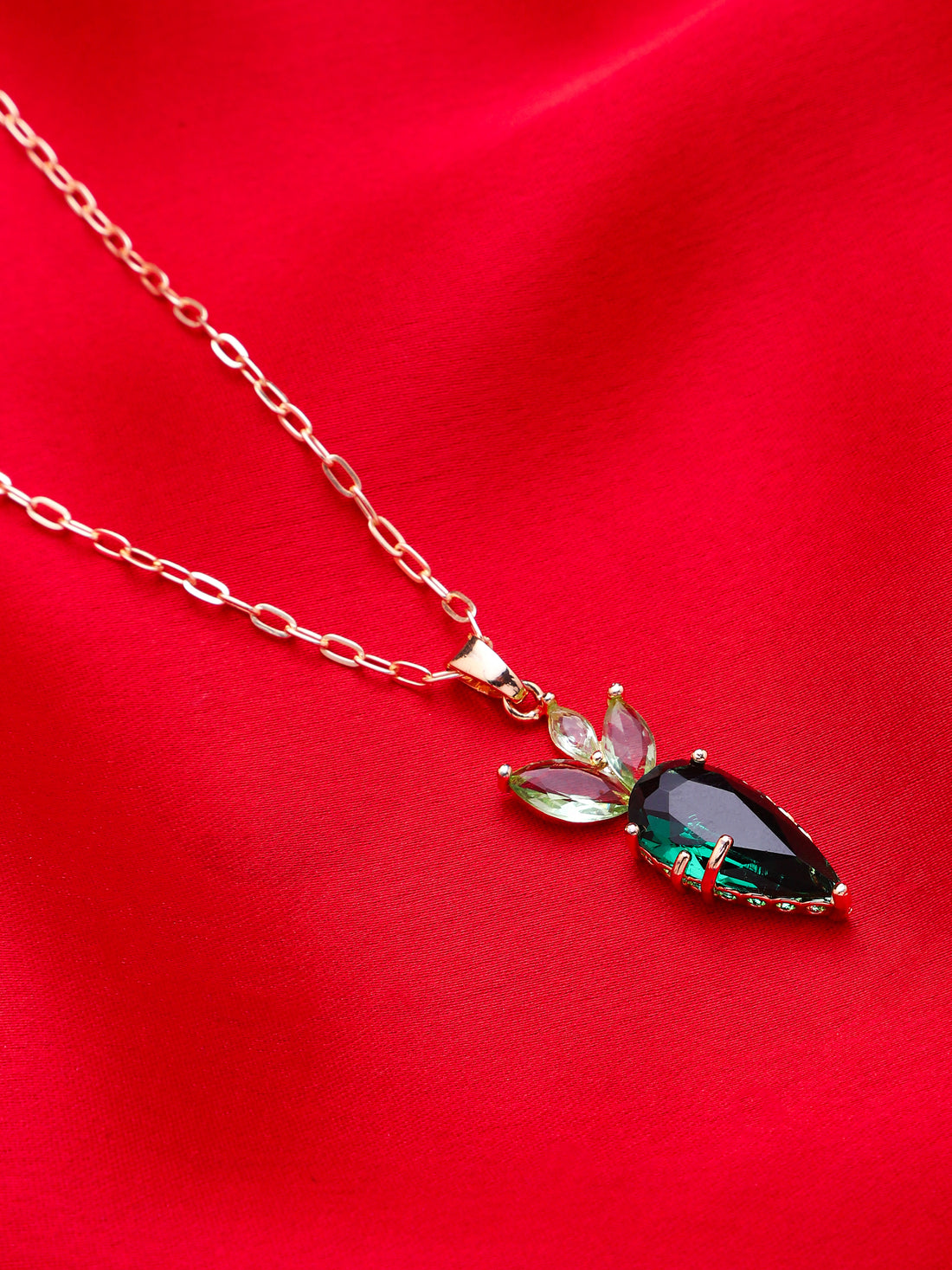 Rose Gold Plated Anti-Tarnish Cubic Zirconia Emerald Necklace