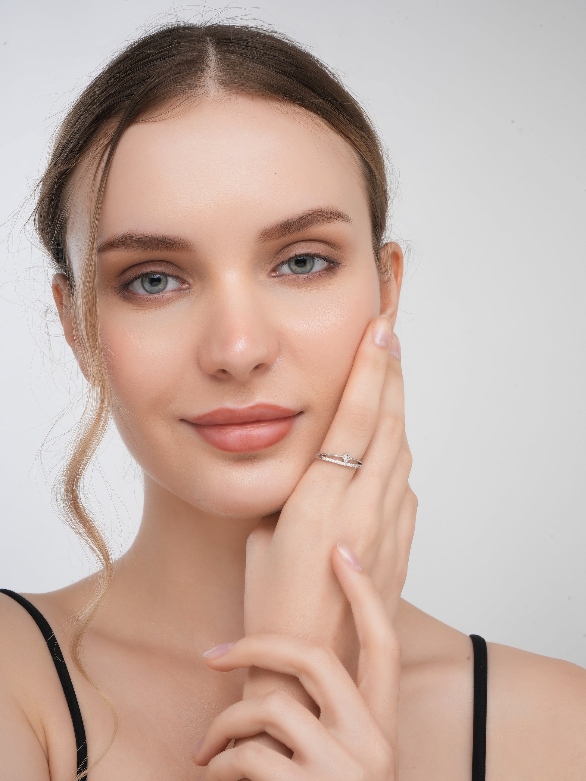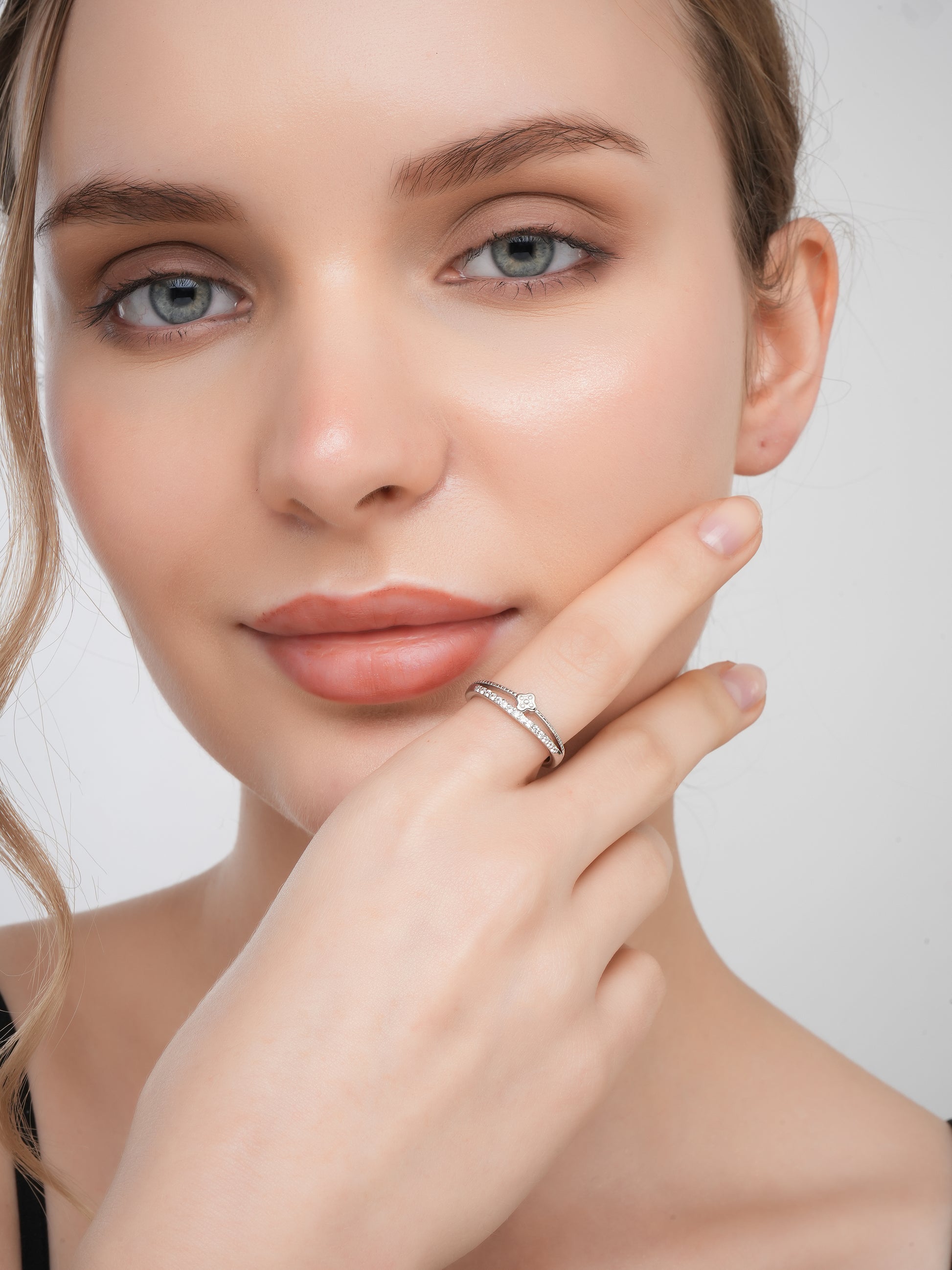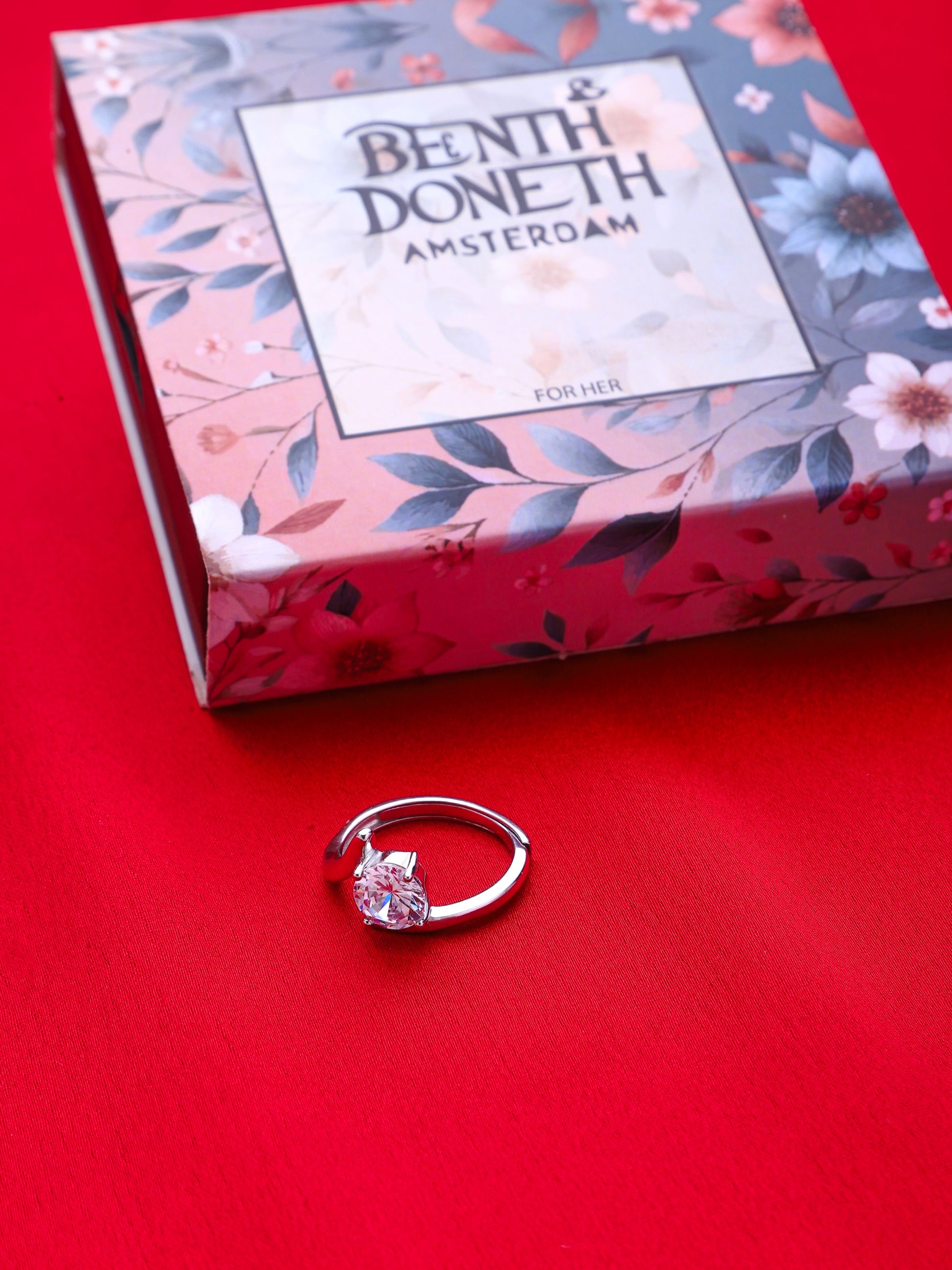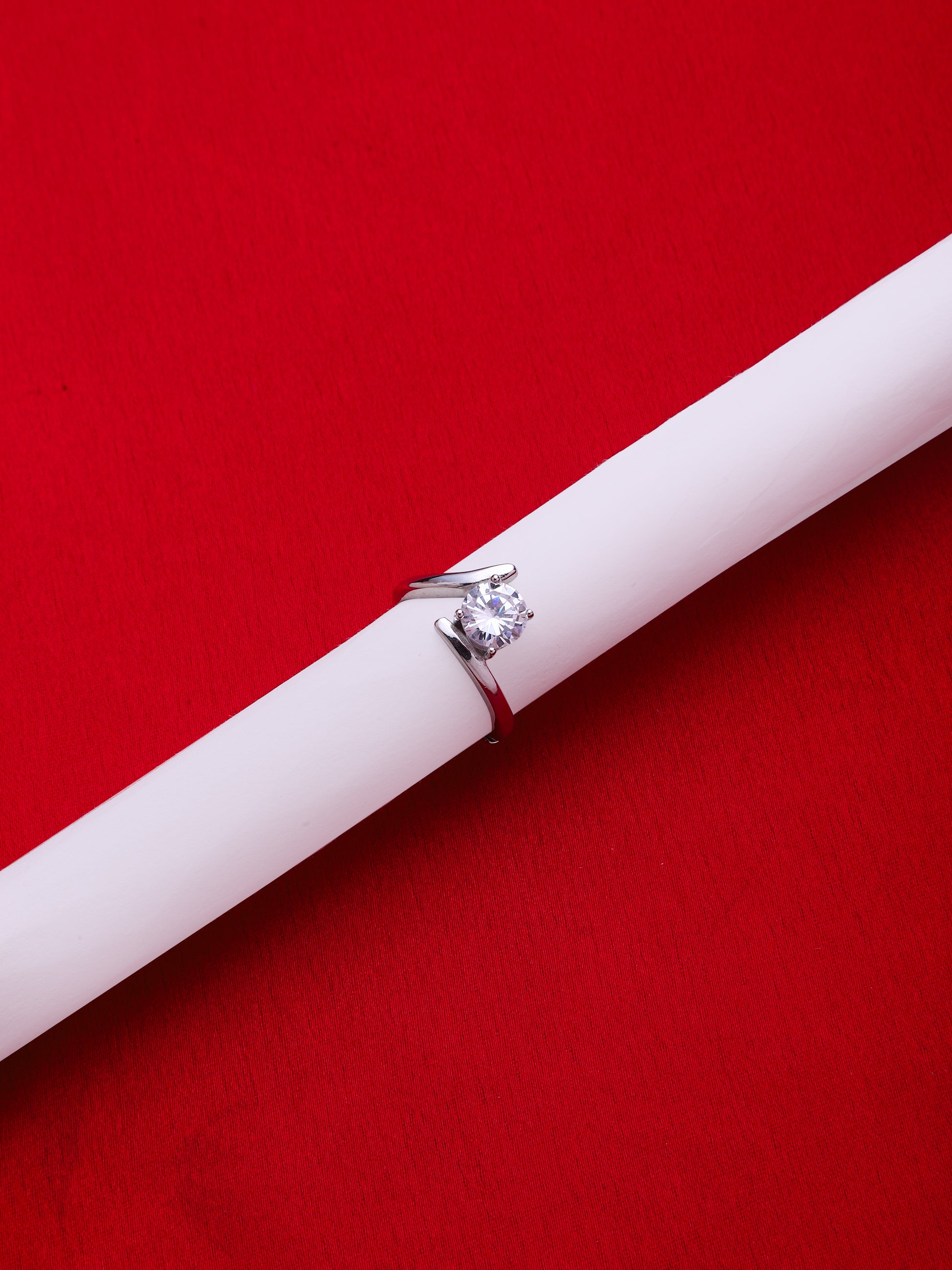 925 Sterling Silver American Diamond Rhodium Plate Adjustable Ring