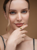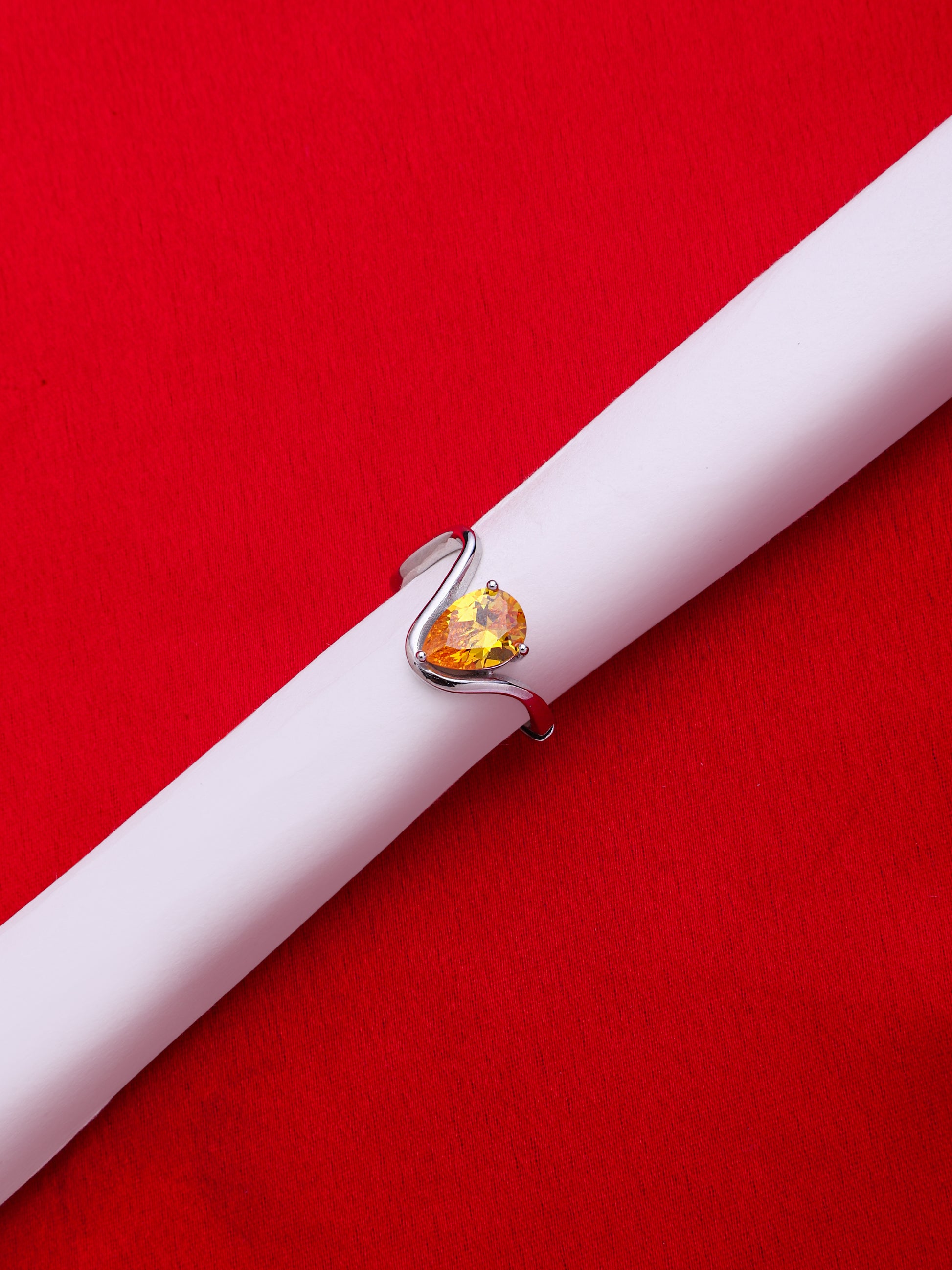 925 Sterling Silver Rhodium Plated Citrine Stone Adjustable Finger Ring