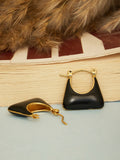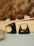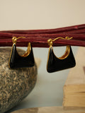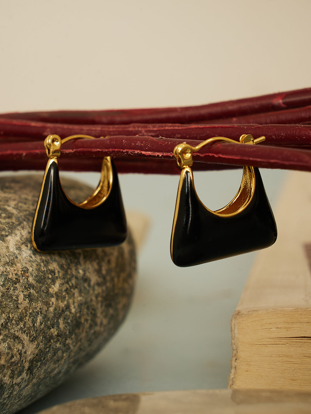 Chic black enamel bag designed hoop earrings with a gold-plated triangular design β bold, stylish, and perfect for elevating any outfit.