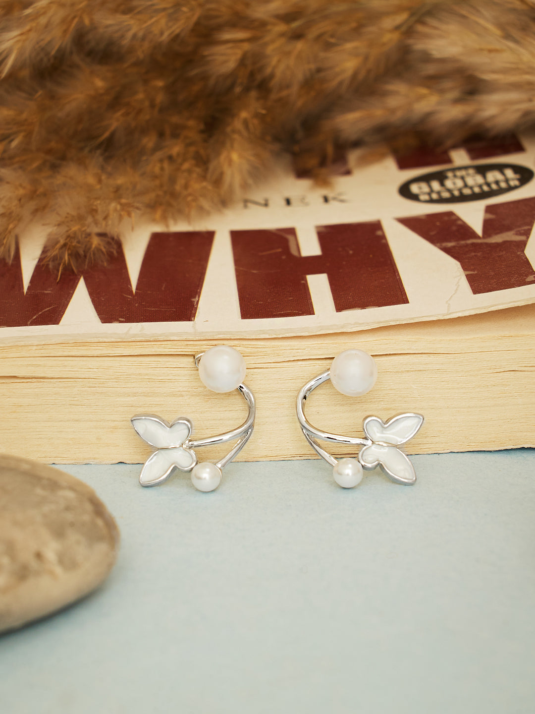 Elegant butterfly pearl earrings crafted with a silver finish, designed to add a soft feminine charm to your everyday and special looks.