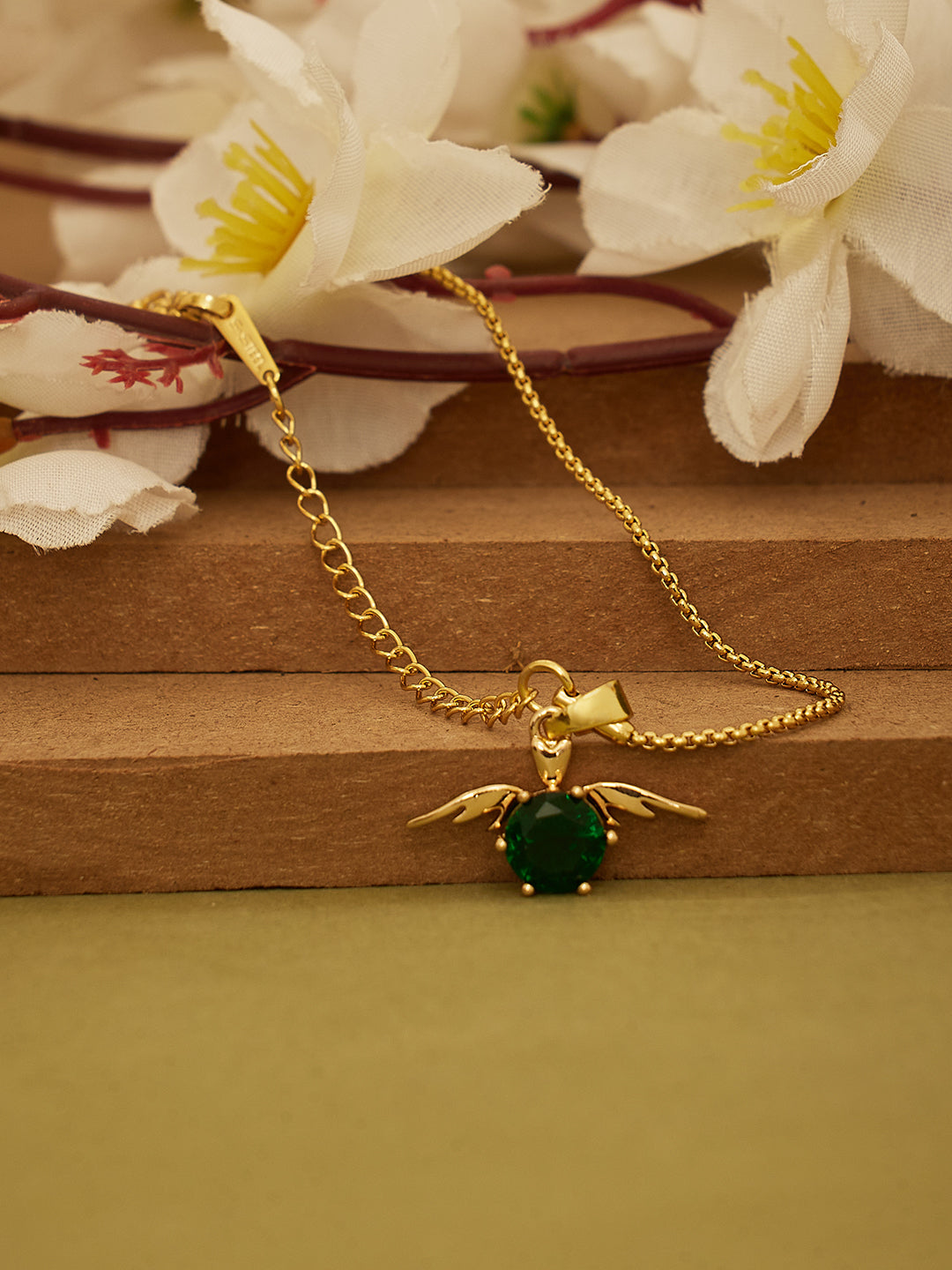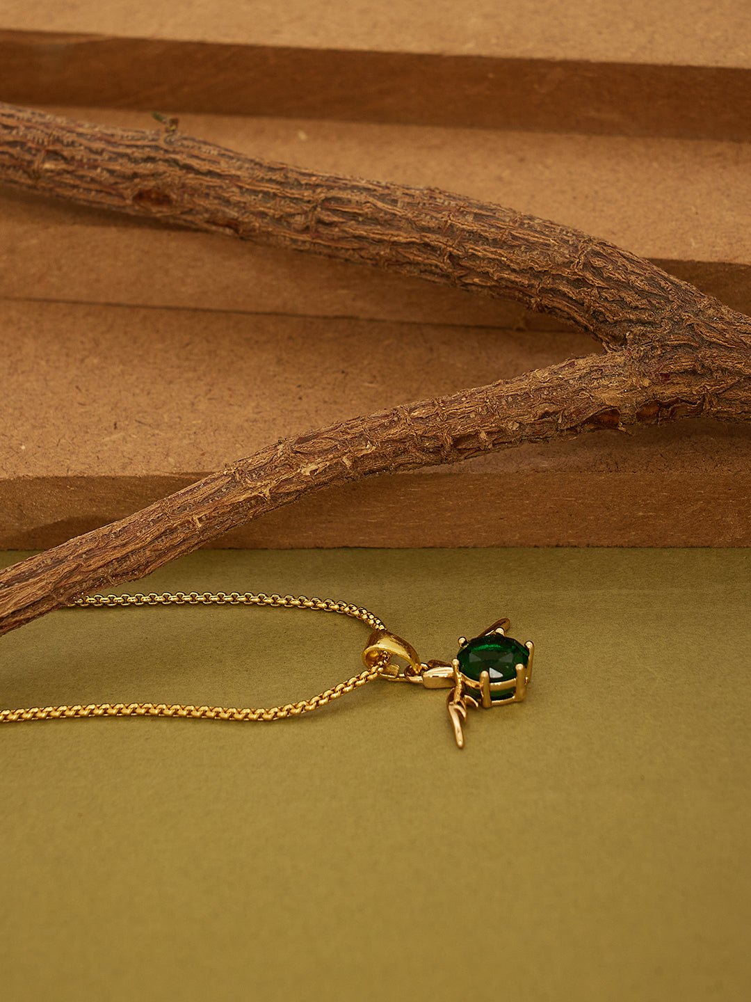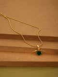 Product Details: A delicate gold-toned chain with a bee-inspired pendant featuring a striking green stone centerpiece, adding a touch of elegance and charm.