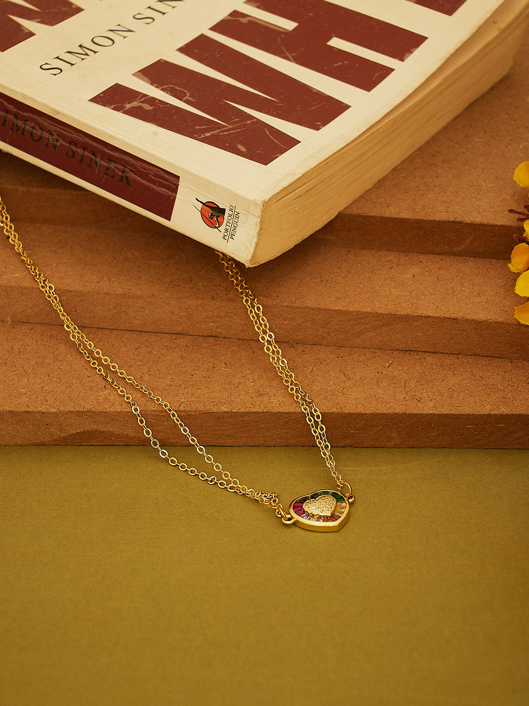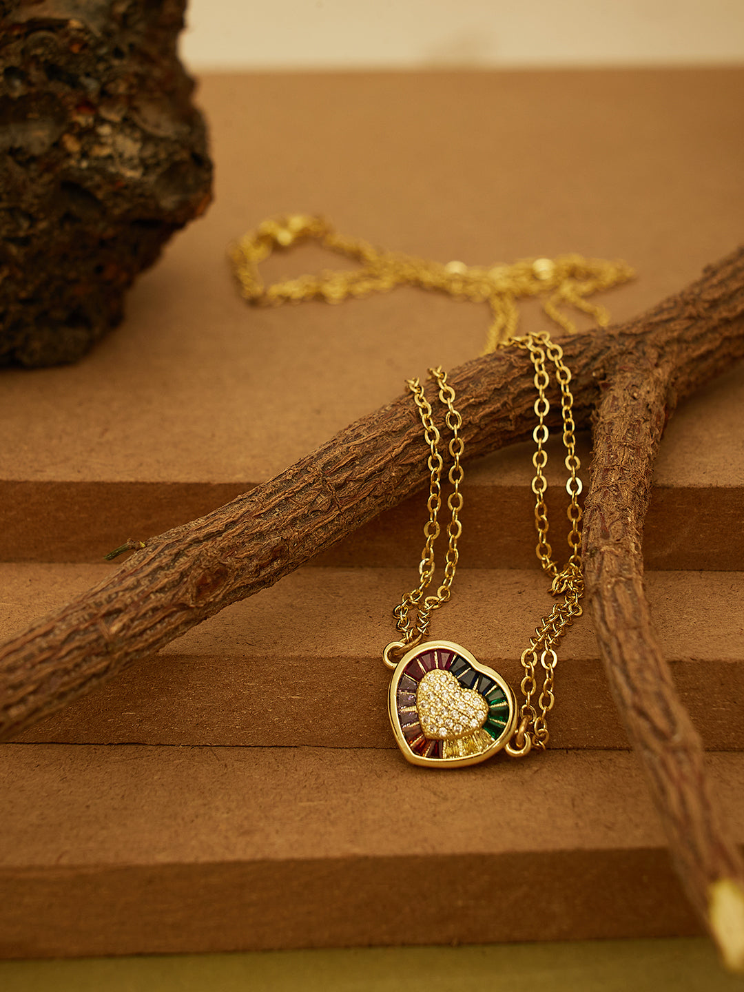 A chic double-layered gold-toned necklace with a colorful enamel heart pendant, symbolizing love and vibrance β perfect for statement yet minimal styling.