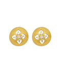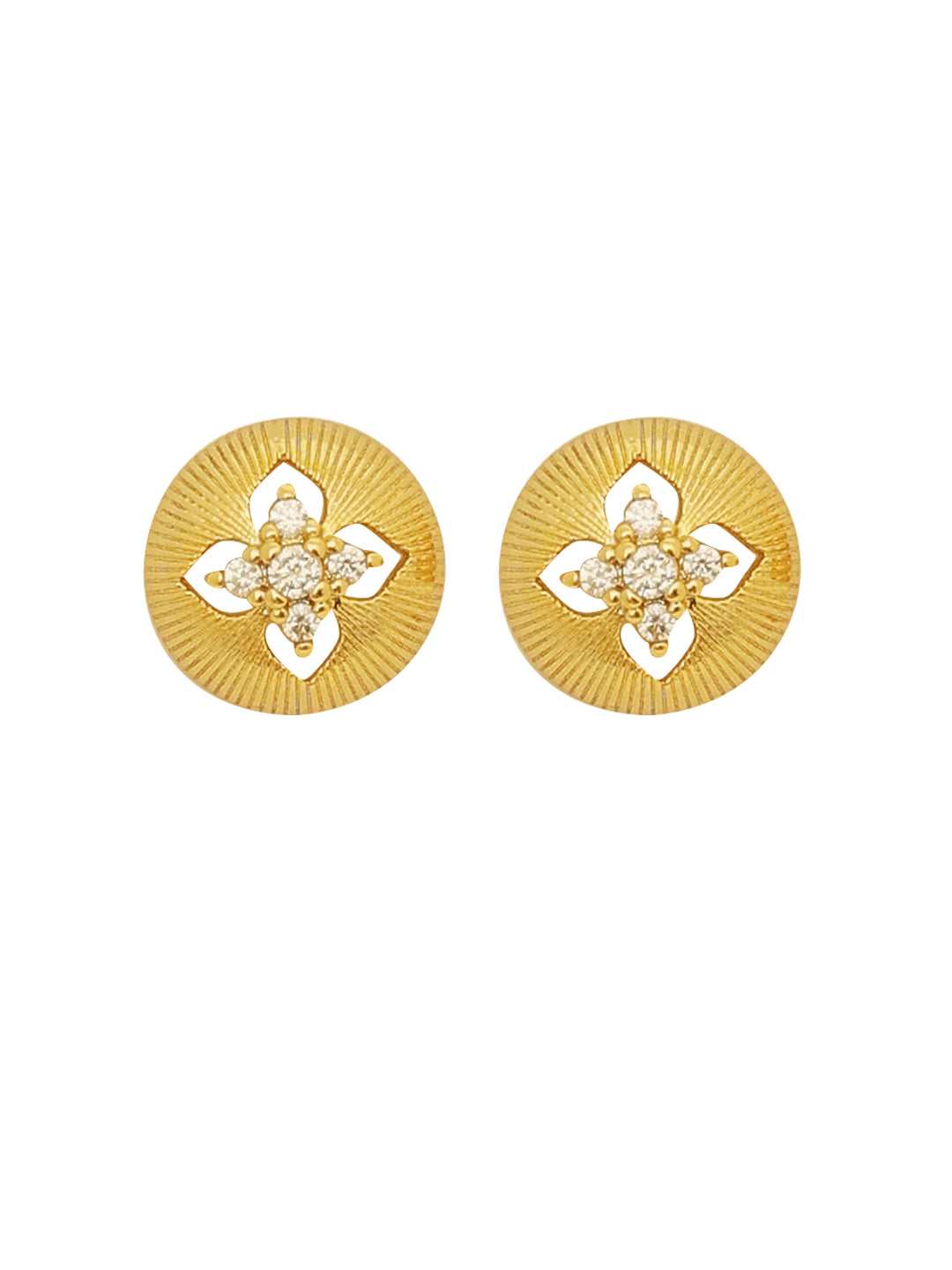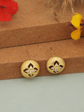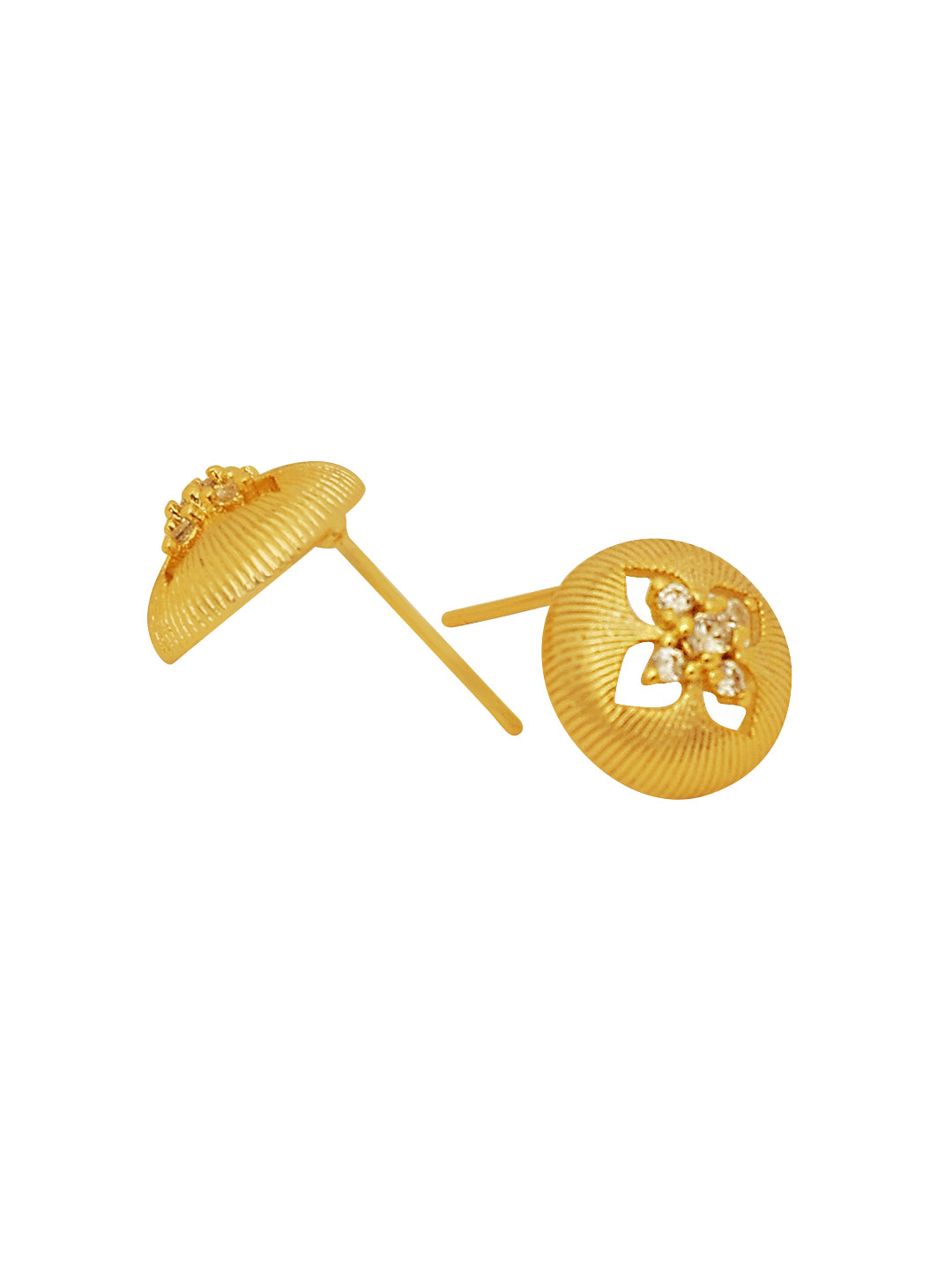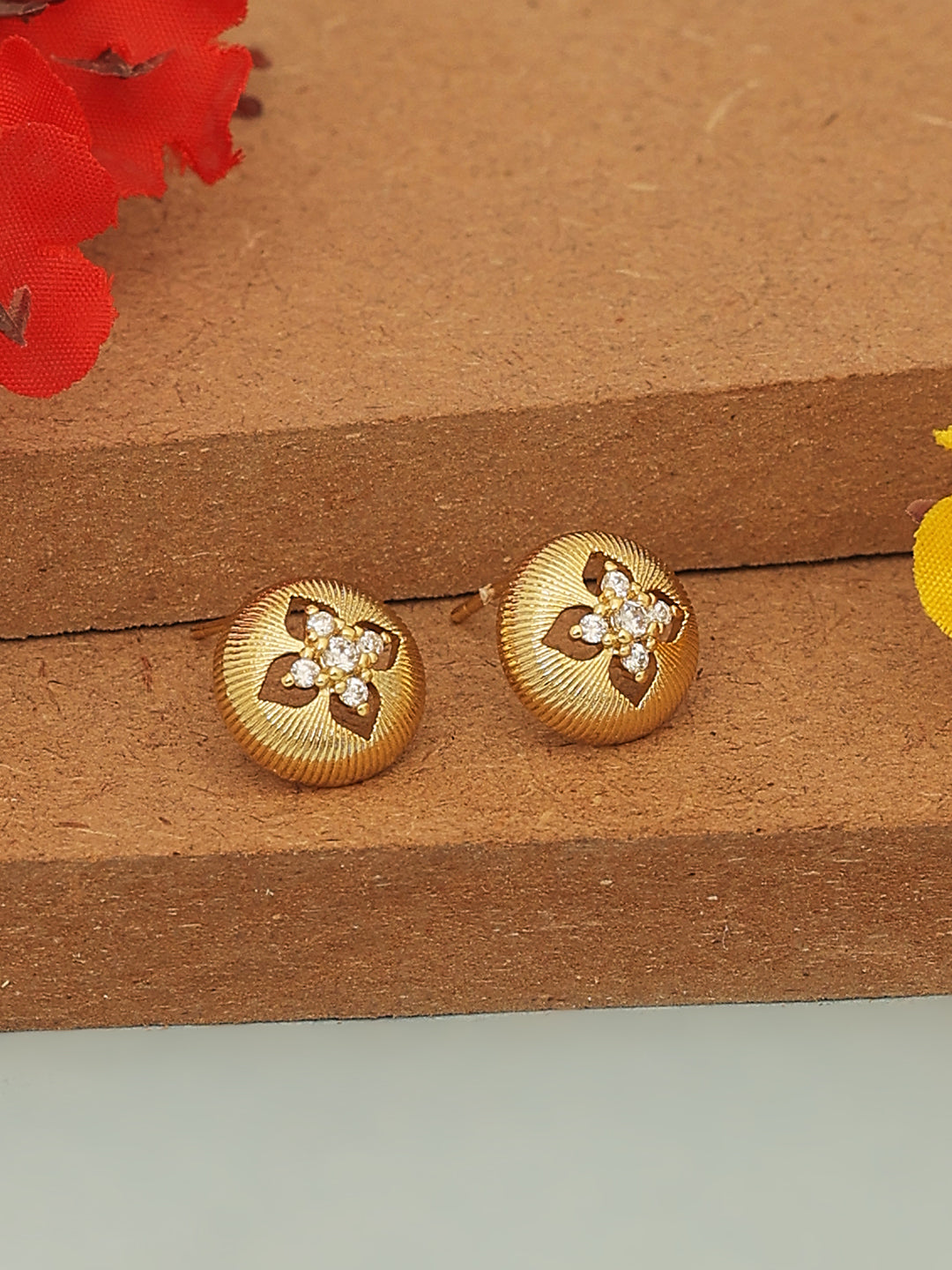 Elegant and timeless, these gold-tone stud earrings feature intricate floral cutout detailing and glimmering stones, ideal for adding charm to any ethnic or festive outfit.