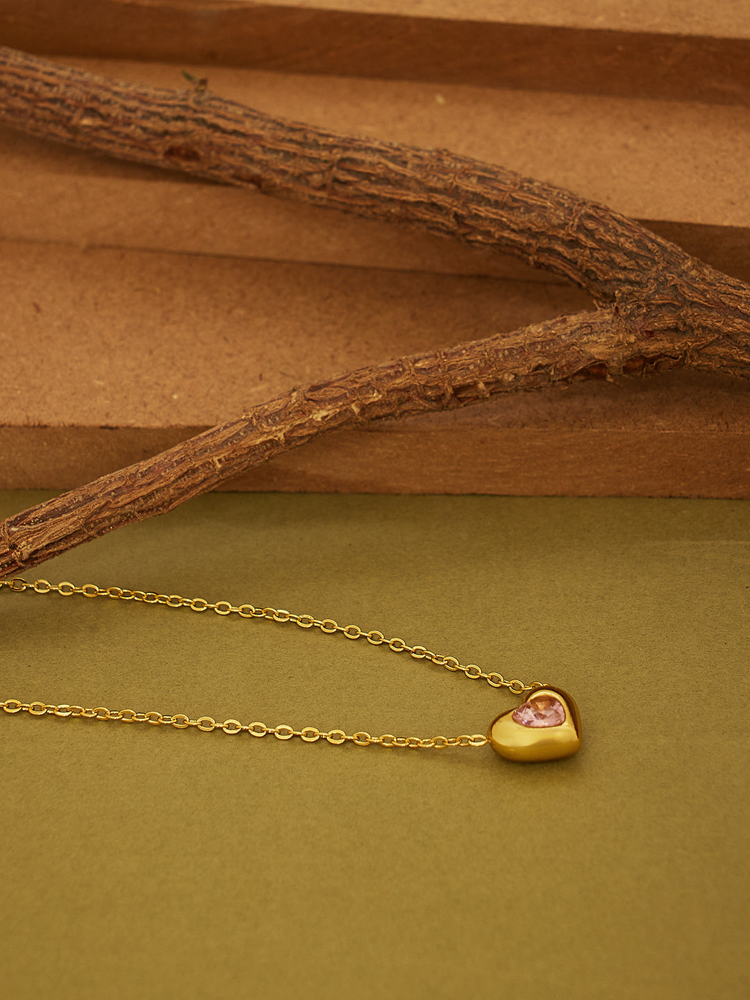 A delicate gold-toned heart pendant necklace with a pink stone centerpiece, perfect for adding a romantic charm to your everyday or special looks.