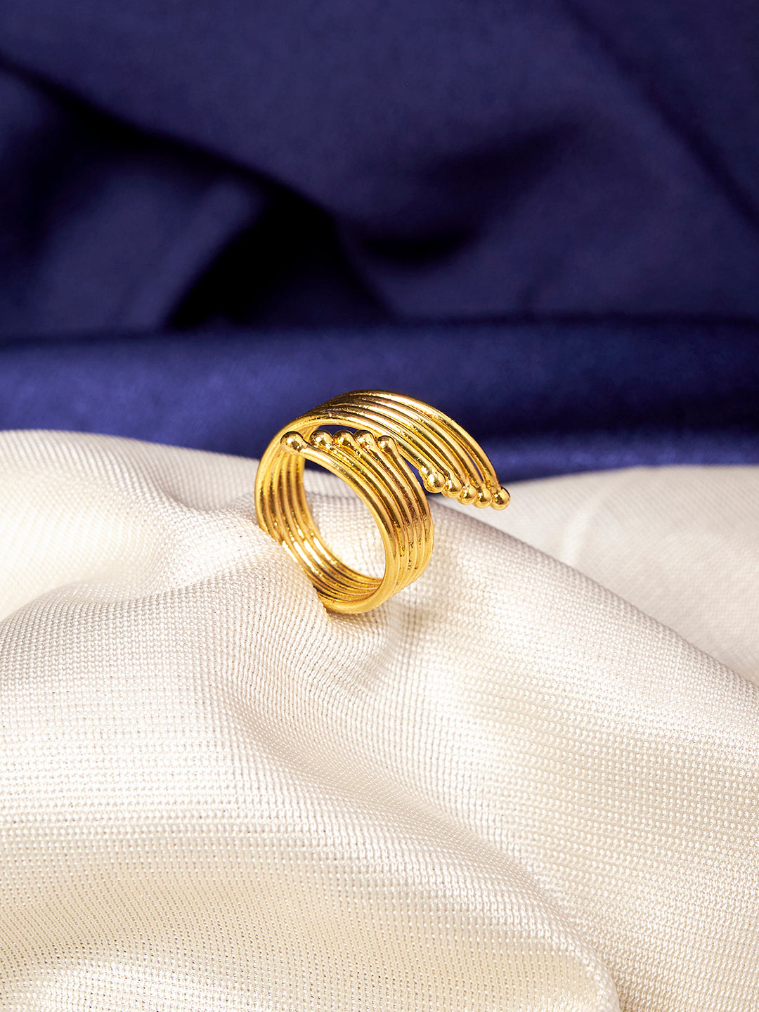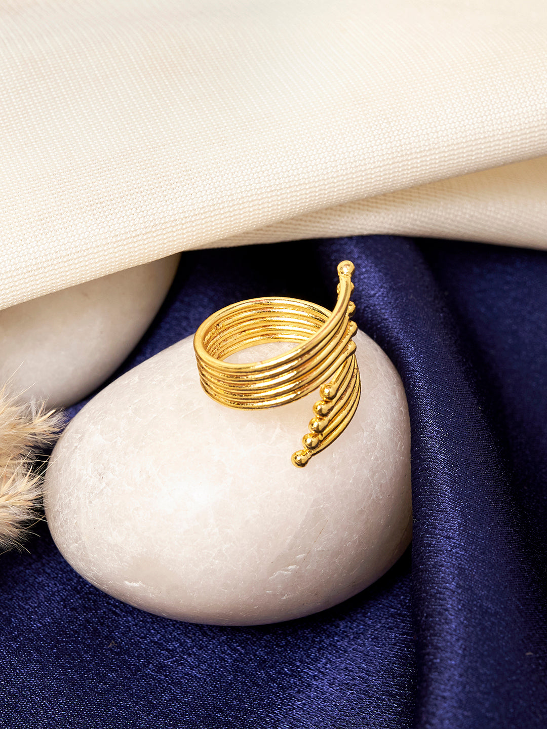 Elevate your style with this stunning gold plated adjustable multi-band coil ring.can be styled effortlessly for parties, festive occasions, or everyday wear.