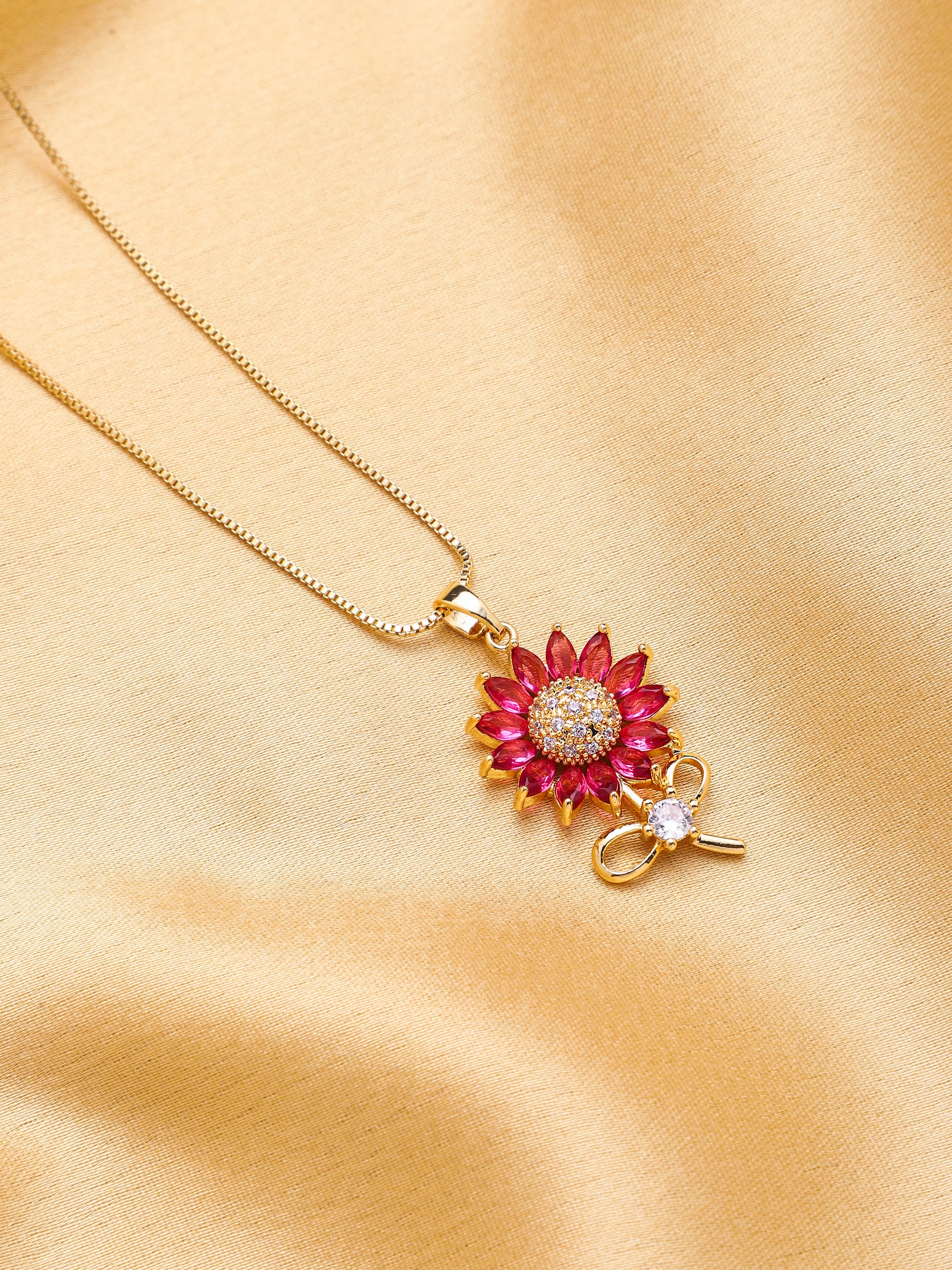 Gold Plated Anti-Tarnish Stainless Steel Floral Necklace