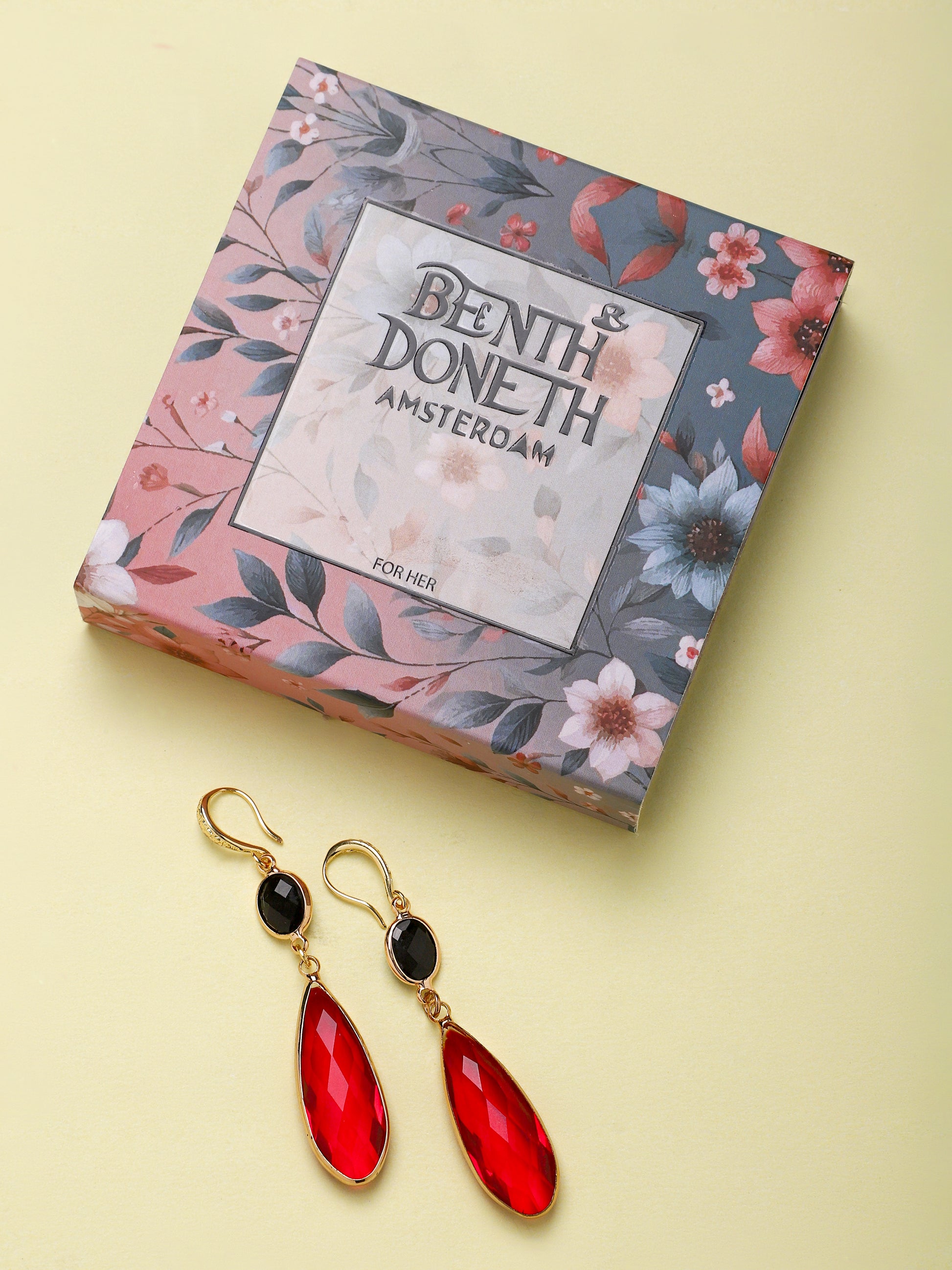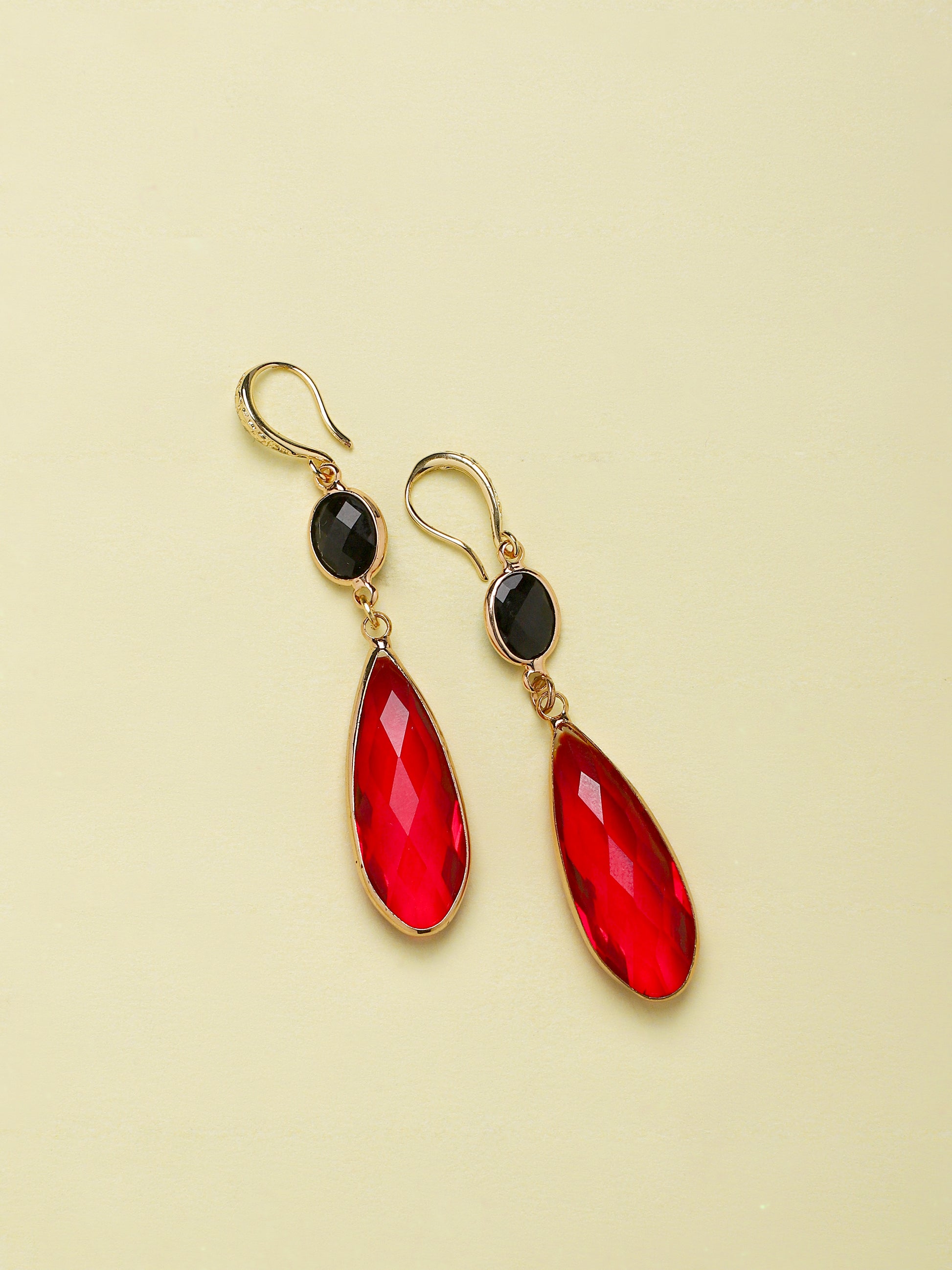 Gold Plated Anti-Tarnish Stainless Steel Red-Black Earrings