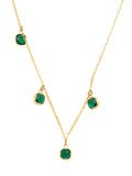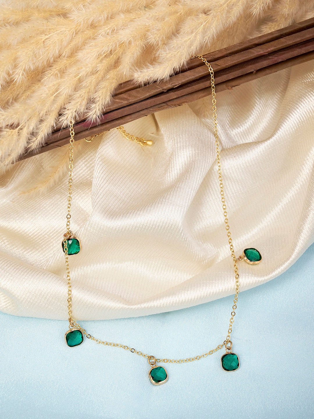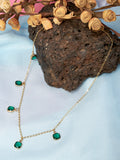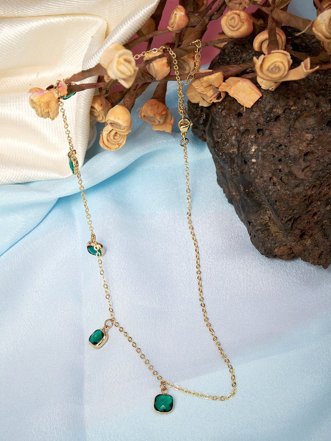 A delicate gold-toned chain featuring four bezel-set green stone charms. Lightweight and versatile, this necklace is perfect for adding a pop of color to any outfit.