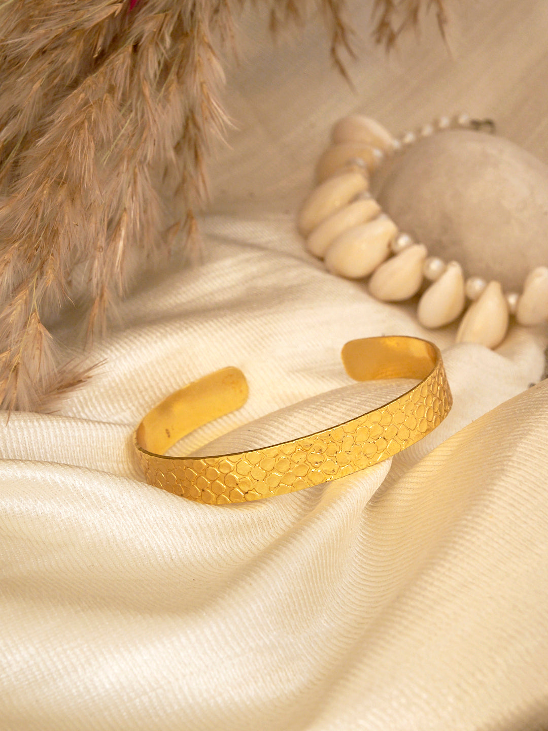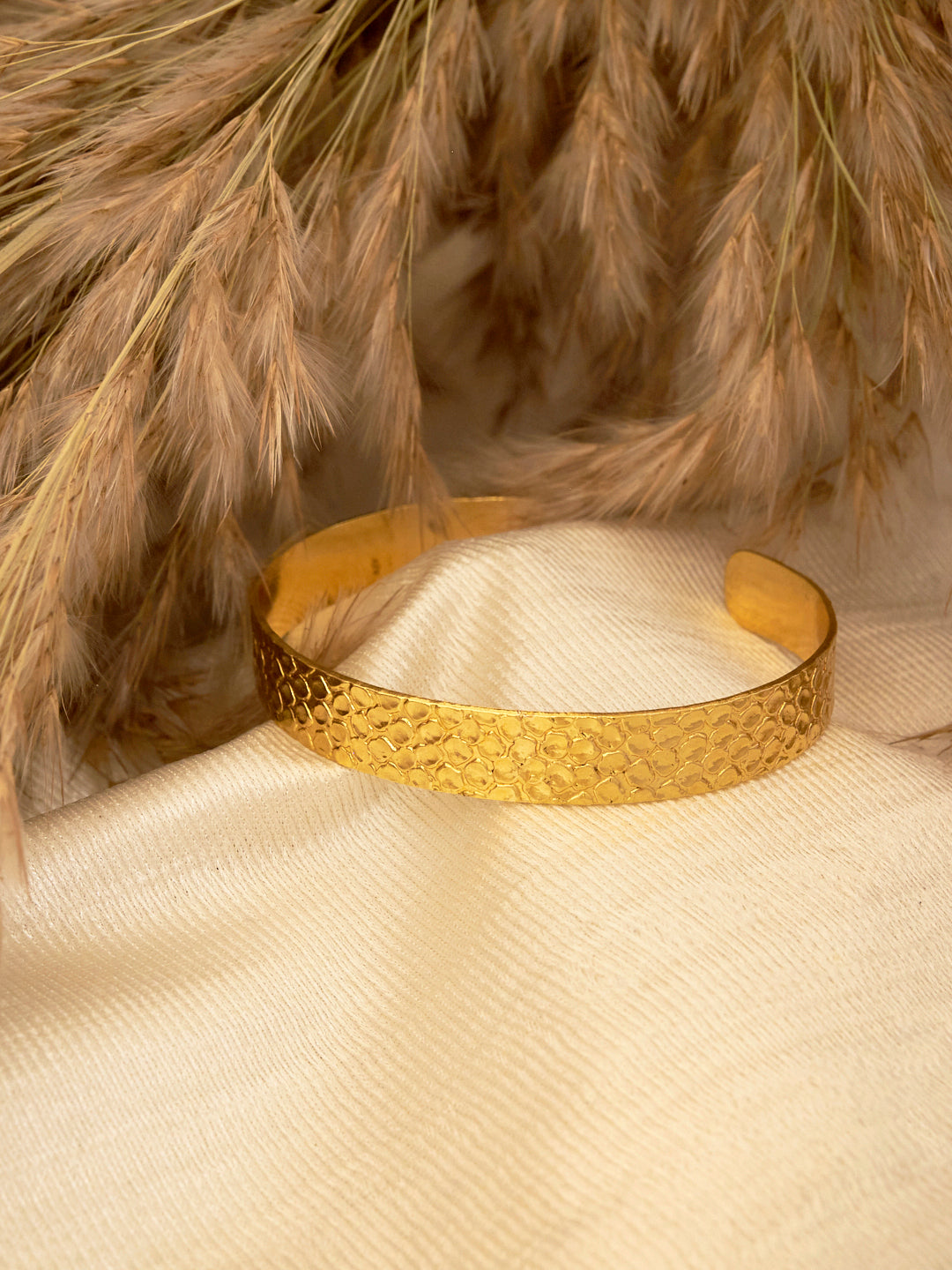Elevate your everyday style with this gold-plated hammered texture cuff bracelet. Adjustable, lightweight, and versatile, it’s the perfect blend of elegance and comfort.