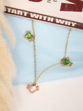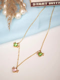A delicate gold-toned chain featuring three heart-shaped charms β two green and one soft pink, each framed with wing-like golden details. The playful design makes it perfect for adding a whimsical yet elegant touch to any look.