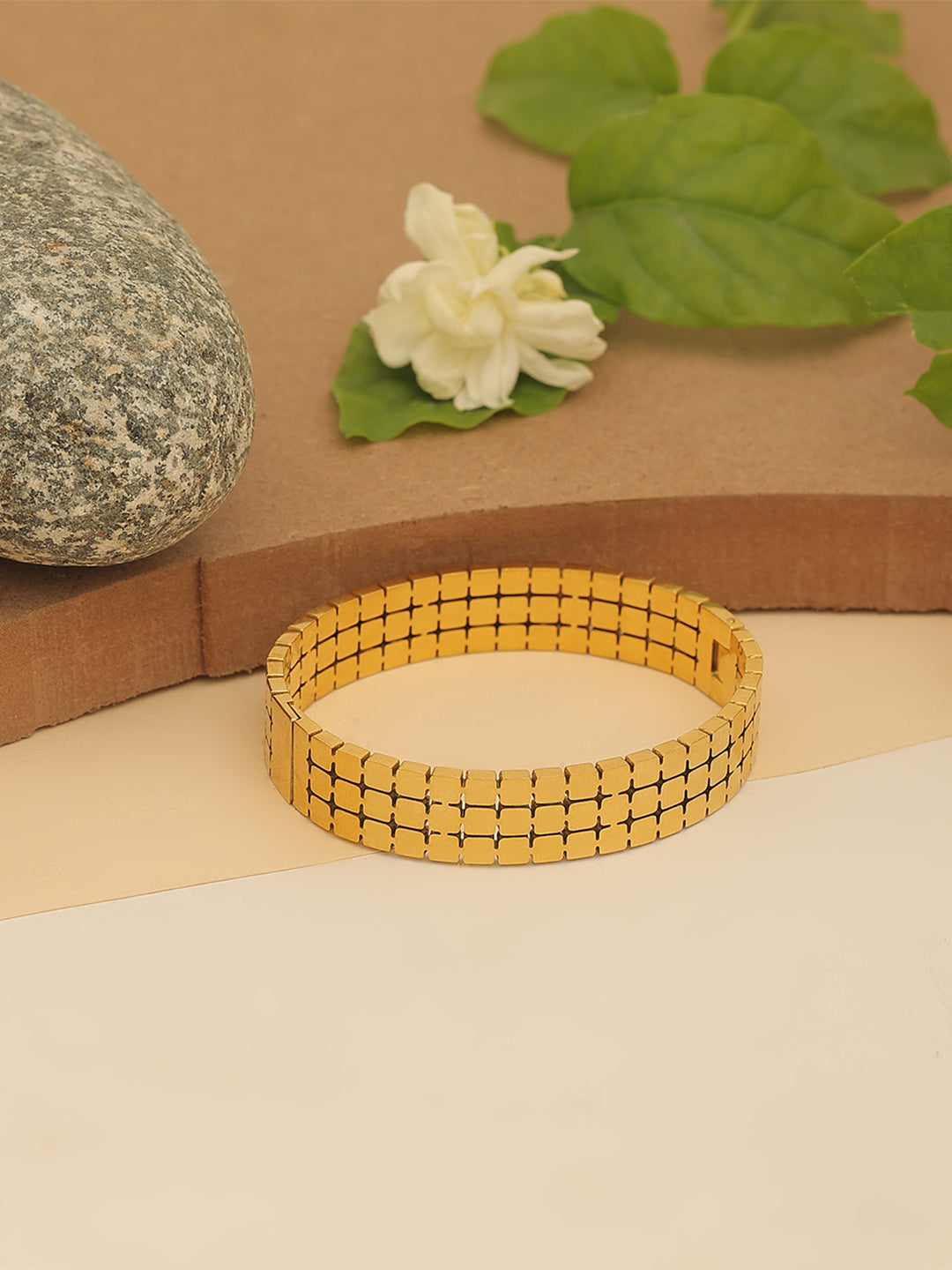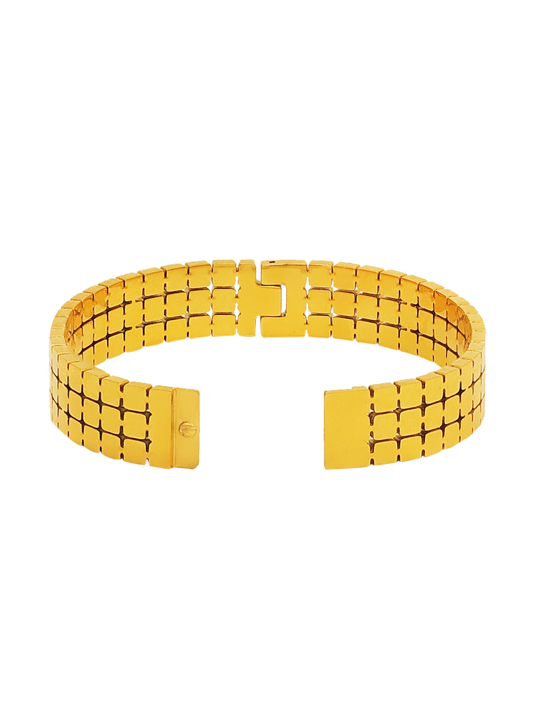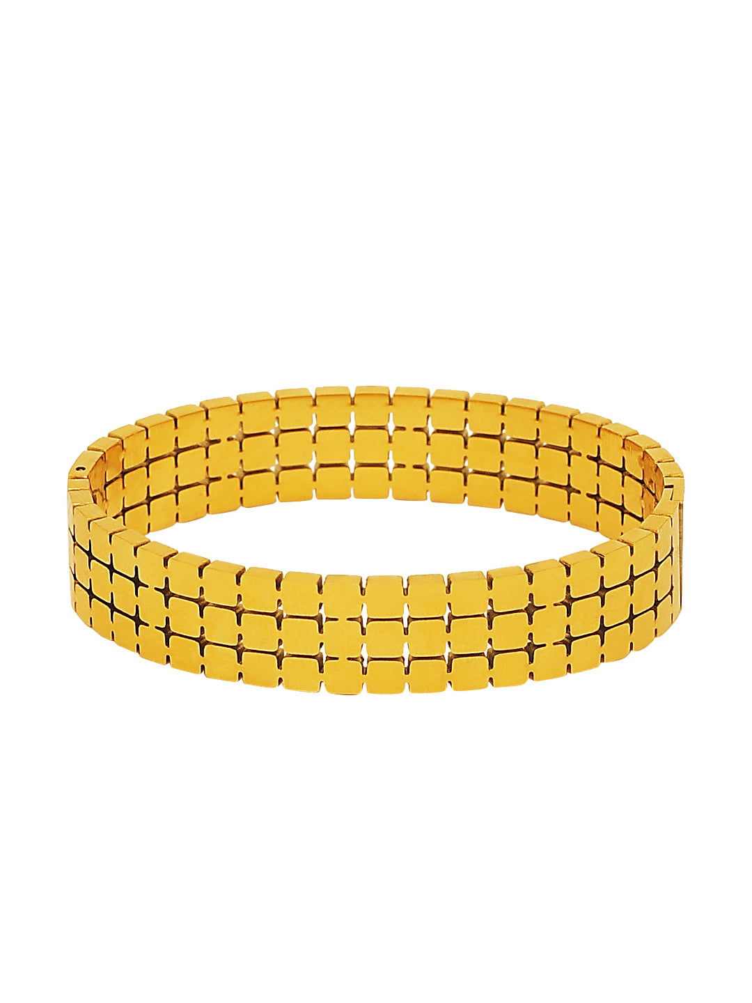 A sleek and sophisticated gold-toned bracelet with a grid-patterned design β a modern statement piece that blends tradition and style effortlessly.