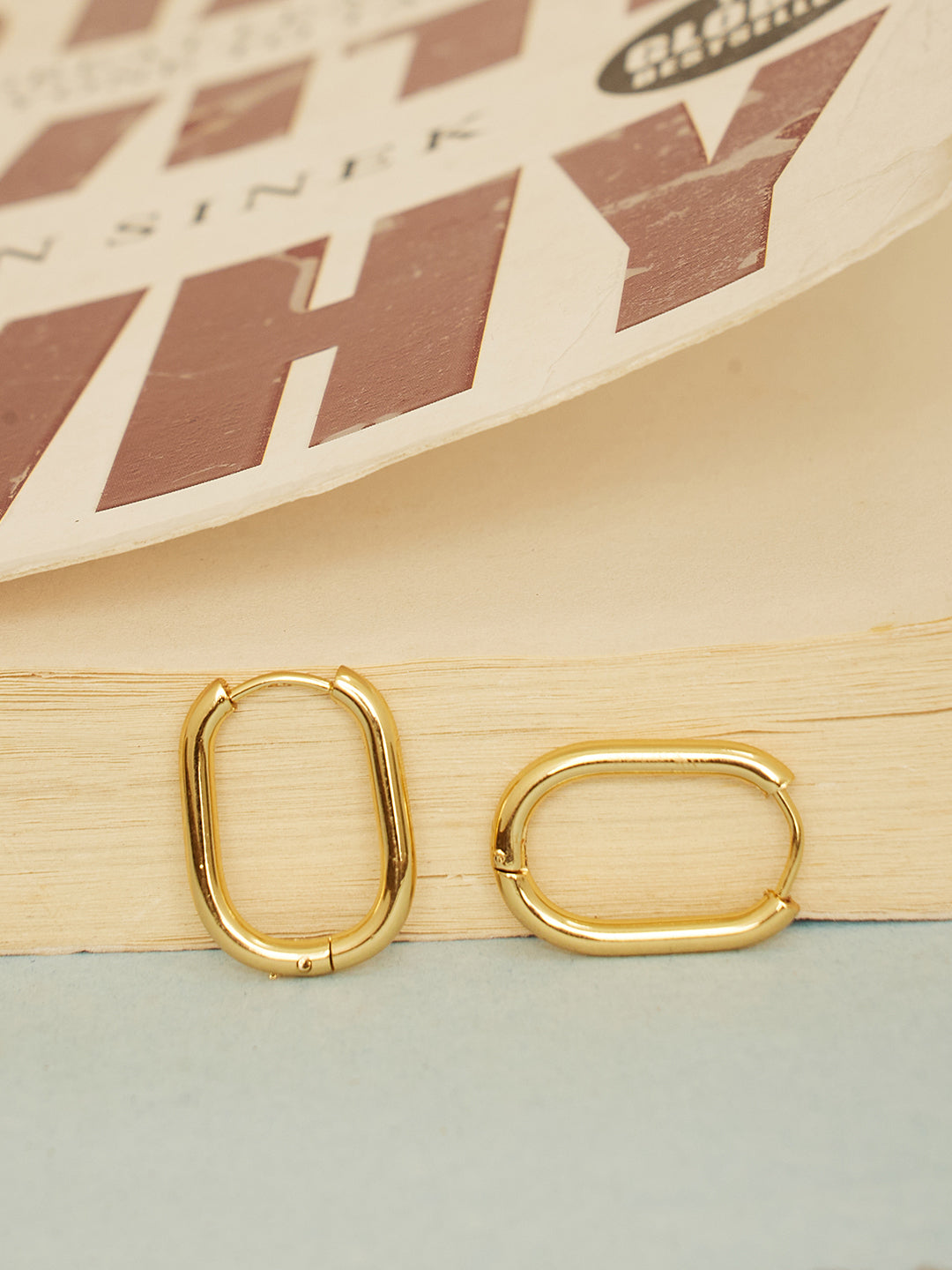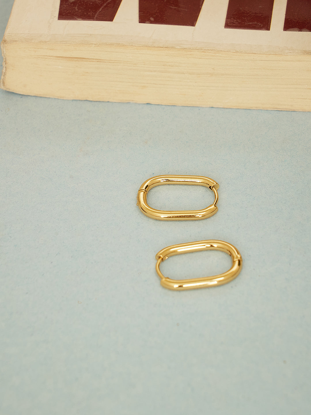 Product Details: These oval-shaped gold-plated hoop earrings are sleek, minimal, and lightweight. Their versatile design makes them a modern wardrobe essential, perfect for daily wear as well as casual outings.