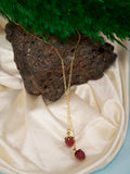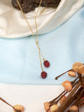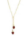 A quirky and fun strawberry-inspired drop necklace featuring two enamel strawberry charms on a delicate gold-toned chain. Perfect for adding a playful yet chic vibe to your look.