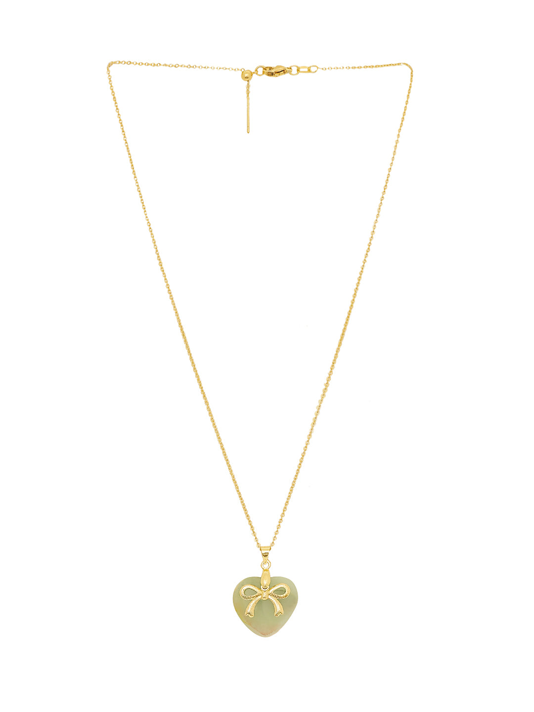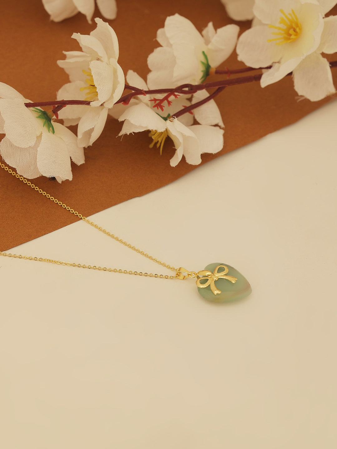 A delicate heart-shaped pendant in soft pastel green, topped with a dainty golden bow—this necklace blends charm with elegance, perfect for gifting or styling your everyday looks.