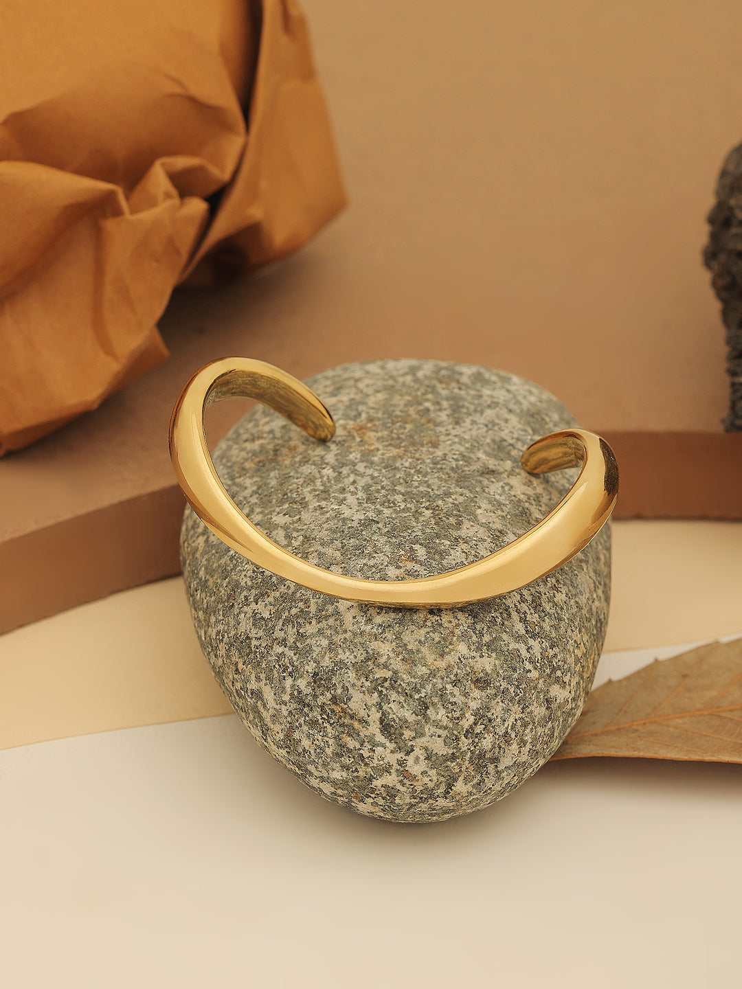 Minimal, bold, and stylish — this open-ended gold-toned cuff bracelet adds a touch of sophistication to any outfit, perfect for both daily wear and special occasions.