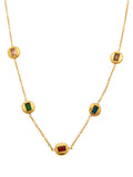 A vibrant multicolor gemstone necklace with gold-toned chain, designed for a chic and elegant appeal.