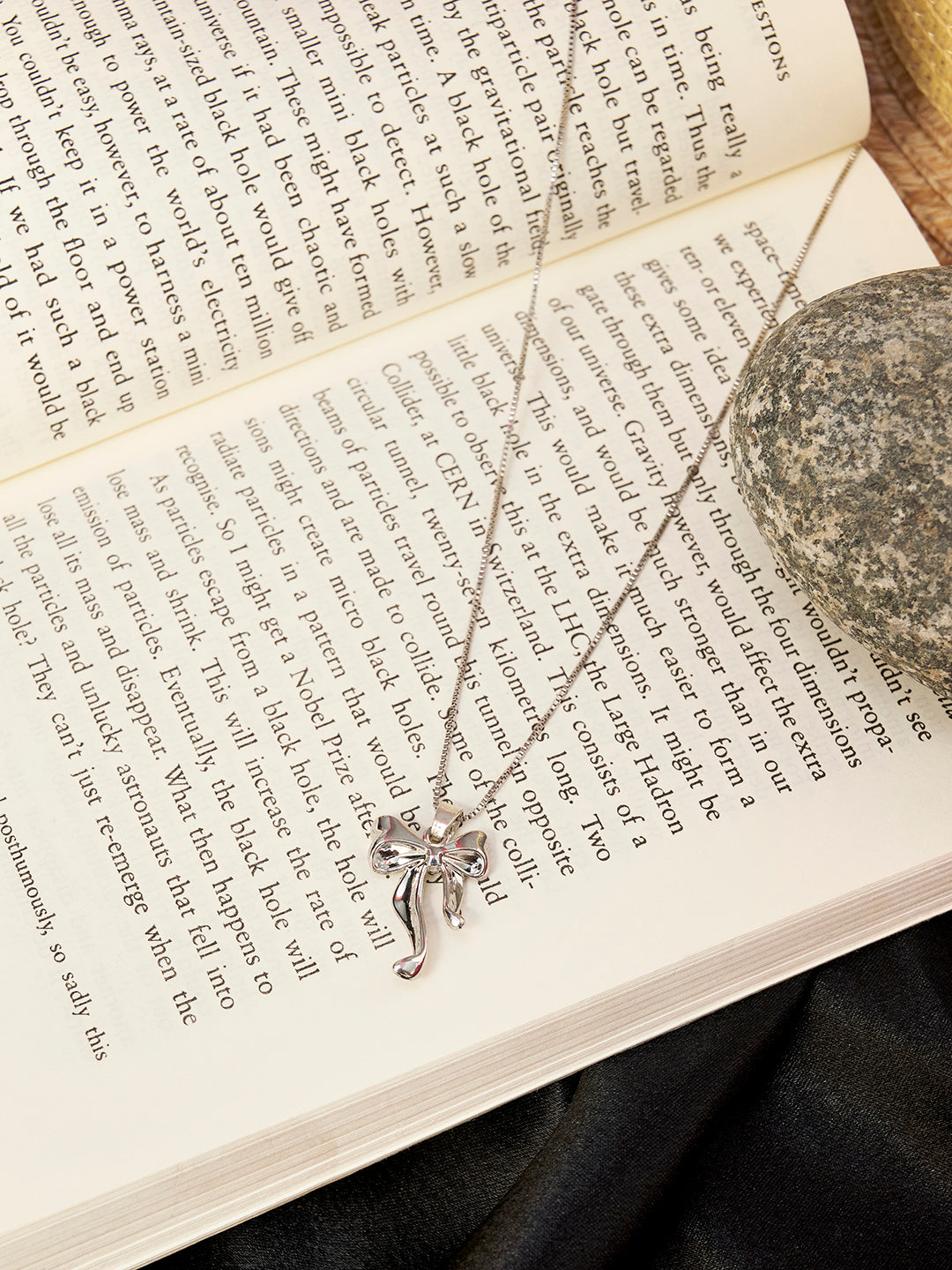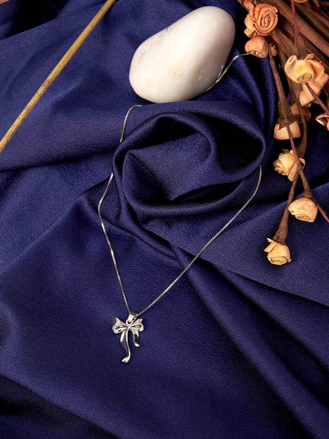 Silver Plated Anti-Tarnish Stainless Steel Bow Shaped Necklace