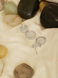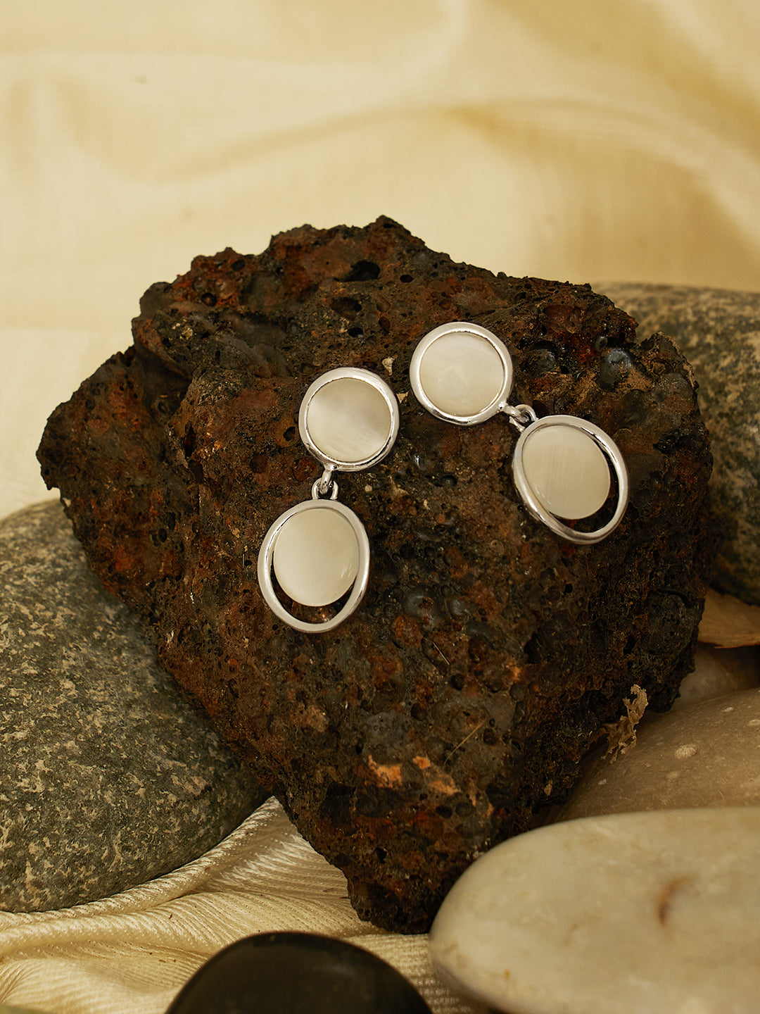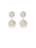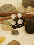 A pair of chic silver-toned drop earrings featuring glossy white stone accents in a dual circular design, perfect for elevating both casual and party looks.