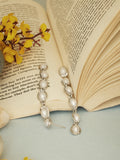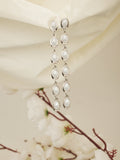 Elegant silver-plated long drop earrings with oval stone accents, perfect for adding a chic and sophisticated touch to any outfit.