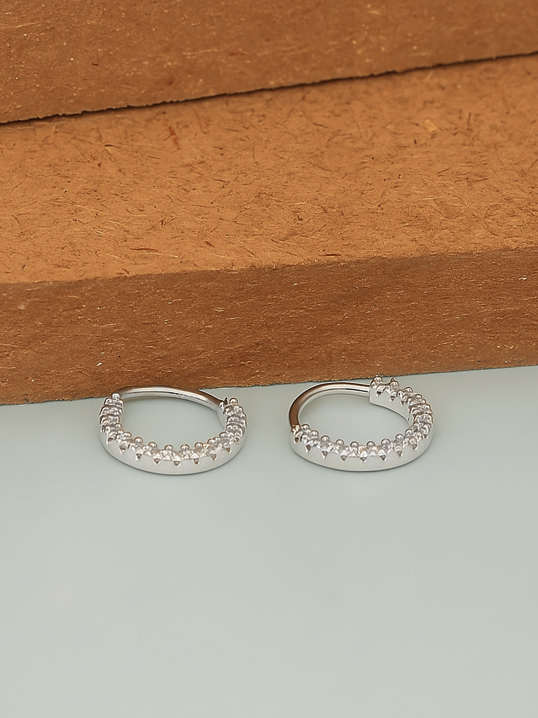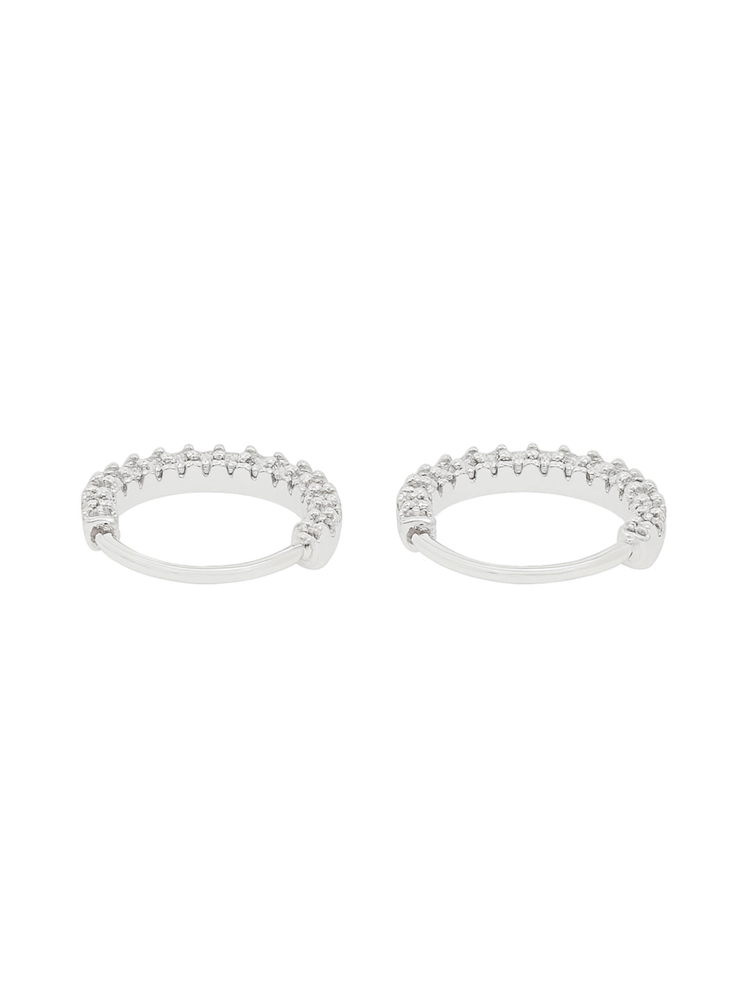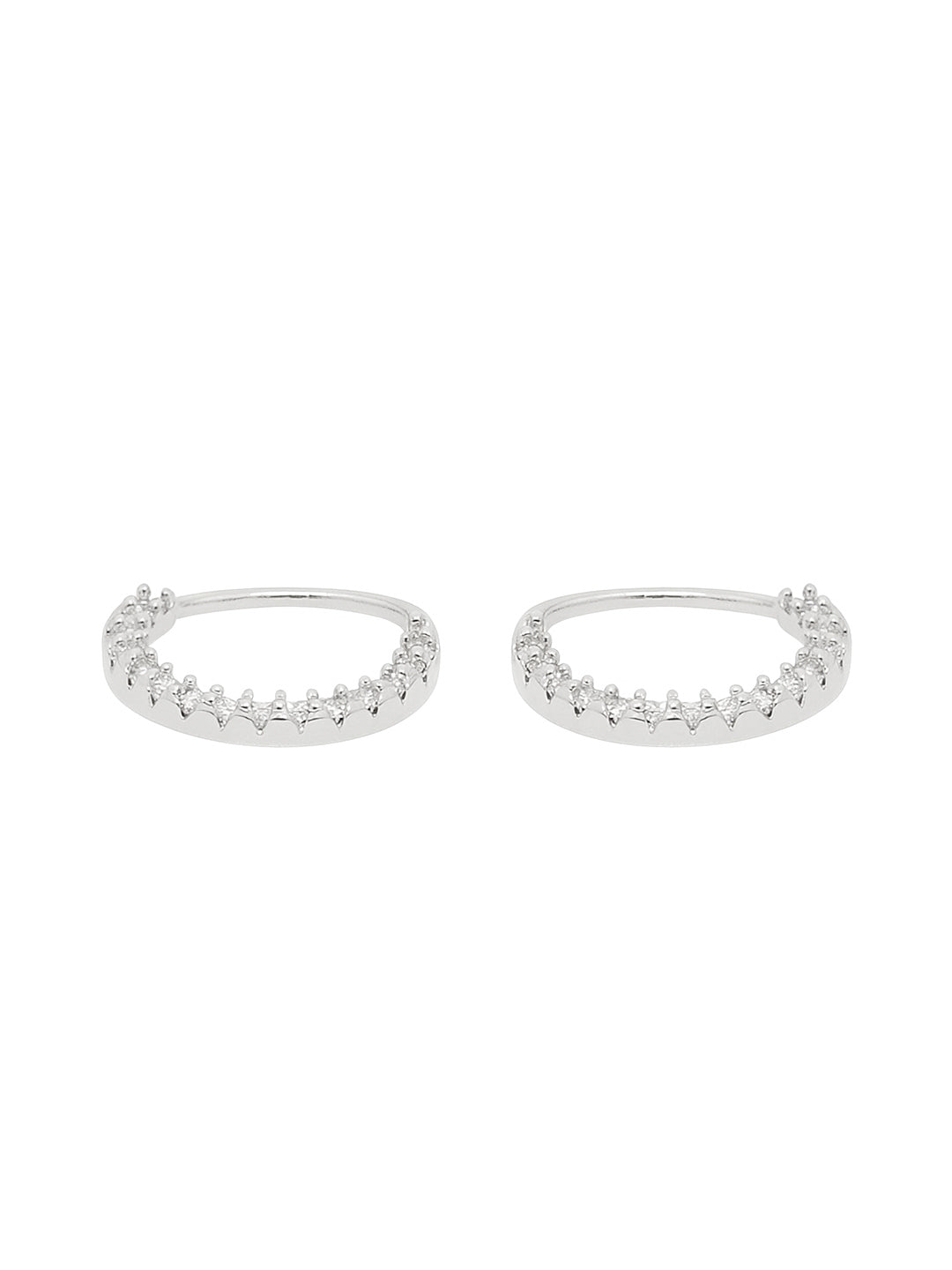 Add a hint of sparkle to your everyday look with these minimal silver huggie earrings, featuring a clean line of dazzling zircon stones for that polished finish.
