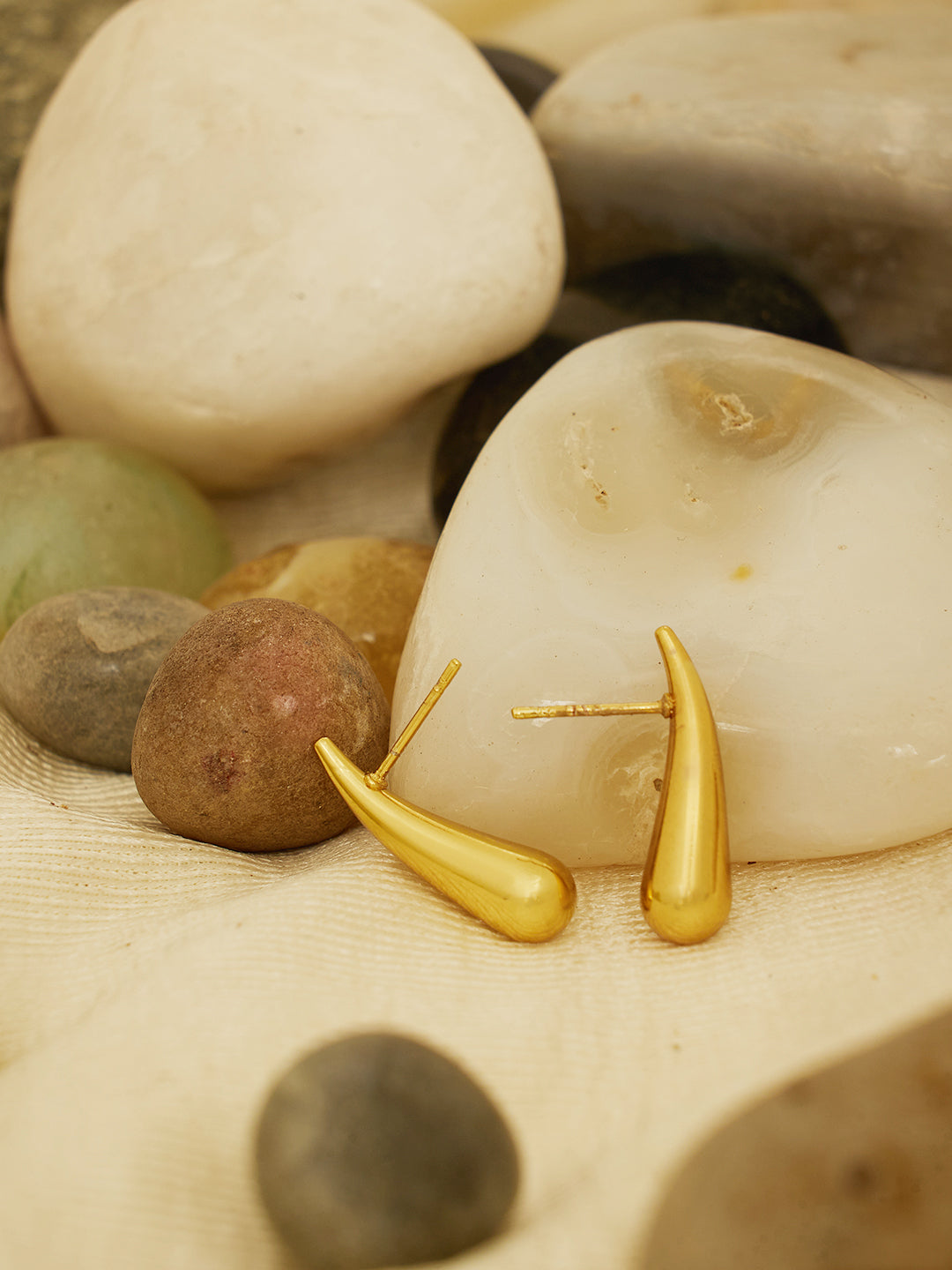 Add a touch of elegance to your look with these sleek teardrop gold-plated stud earrings. Lightweight, minimal, and versatile – perfect for daily wear or special occasions.